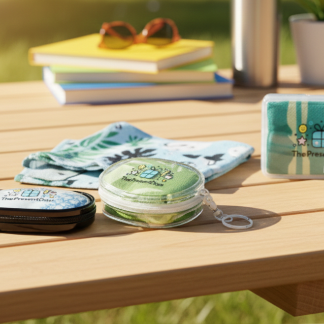 The quick-dry microfiber material is gentle on skin and highly absorbent, while the compact case keeps the towel clean and organized in backpacks or swim bags. Fully customizable with your logo or artwork, this set is both practical and fun—an ideal branded essential for everyday use, events, or summer programs.